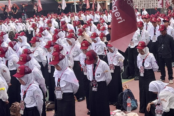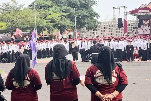 Rektor Universitas Harkat Negeri, Sudirman Said, saat upacara pembukaan PKKMB 2025 di kampus Jalan Mataram, Rabu (17/9) mengucapkan selamat kepada 736 mahasiswa baru tahun 2025, yang datang dari Tegal, Brebes, Pemalang, Pekalongan, Banyumas, Jepara, Kudus, Blitar, Cirebon, Jakarta, NTT hingga Papua.